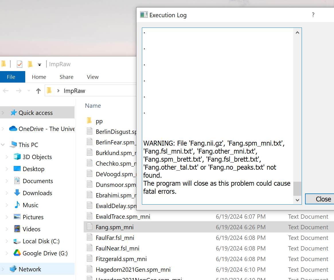 WARNING: File 'Fang.nii.gz', 'Fang.spm_mni.txt', 'Fang.fsl_mni.txt', 'Fang.other_mni.txt', 'Fang.spm_brett.txt', 'Fang.fsl_brett.txt', 'Fang.other_tal.txt' or 'Fang.no_peaks.txt' not found.