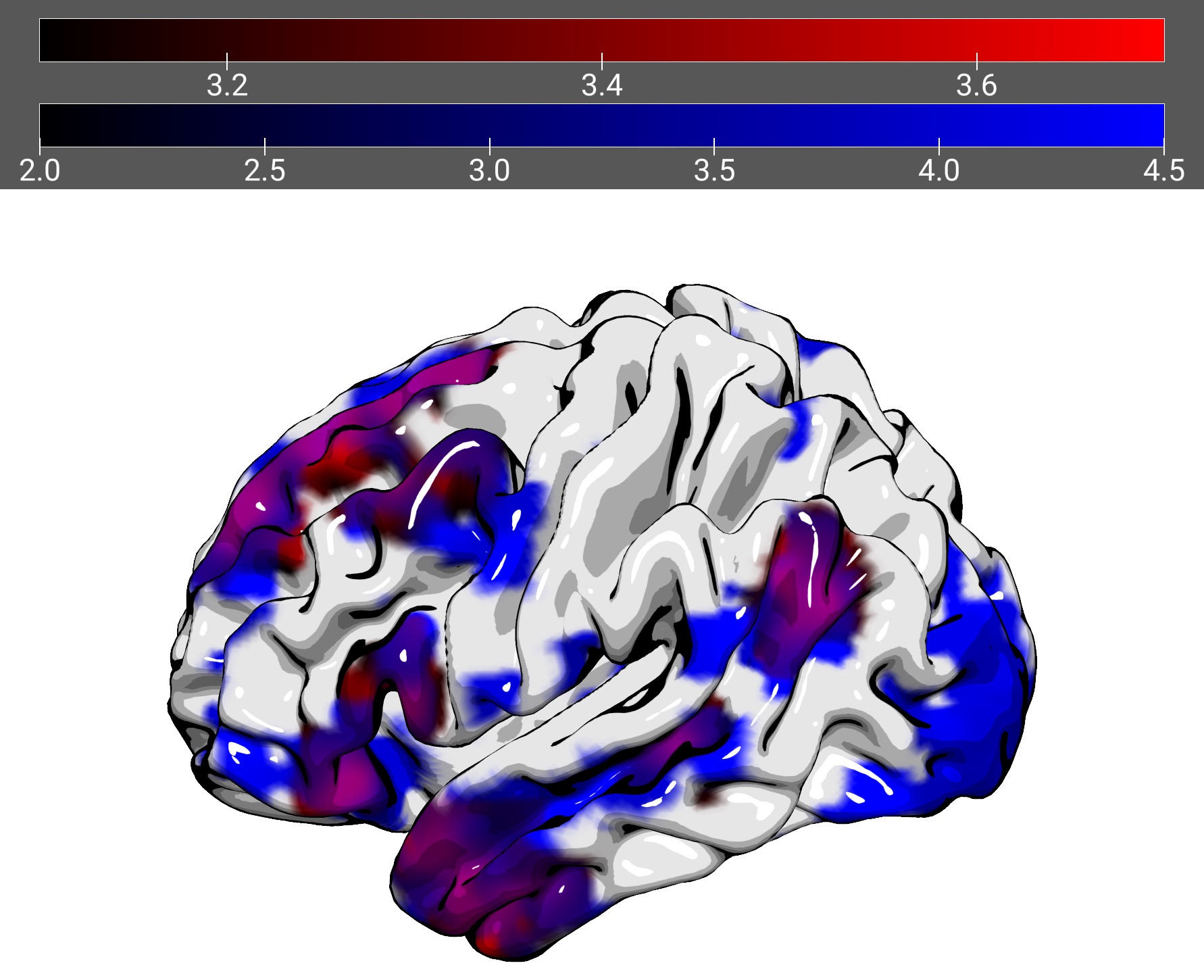 I have two activation maps that I have read into surfice. As you can see at the top, there are two bars corresponding to each activation map, one for red and one for blue. Is there a way to show the activation bar for the concurrently activated regions (e.g. PURPLE region)?