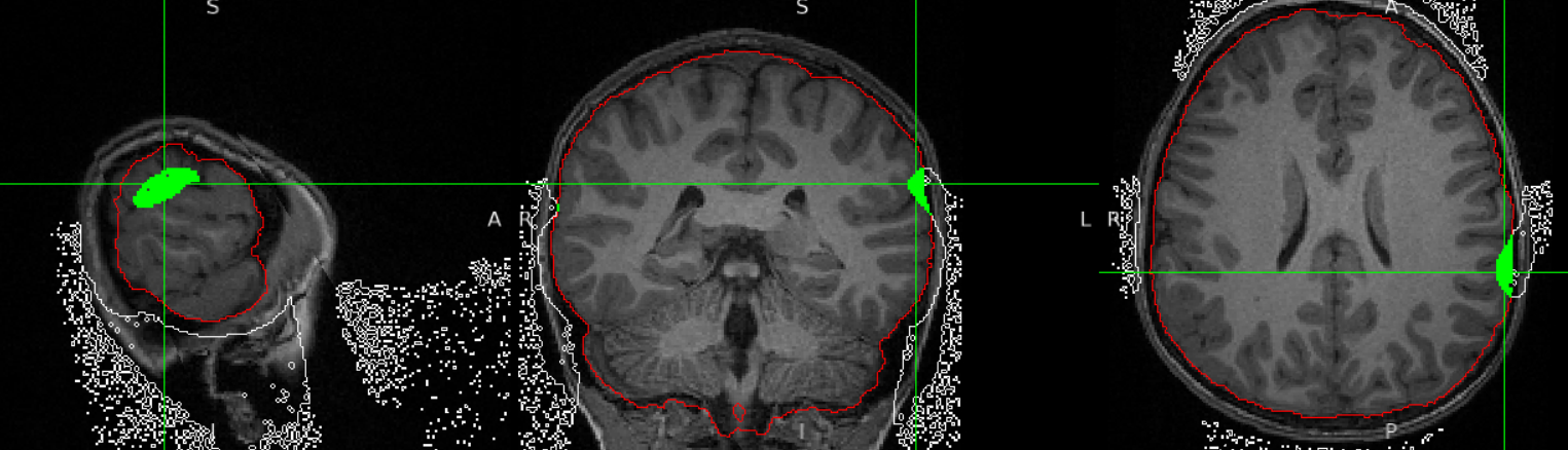 This is just one example, but with this particular population, it happens roughly 10% of the time, with varying degree of severity. I'm wondering if this is because the population is kids, and so the distance between the surface of their brain and skin is a lot of times less than 10 1mm voxels, and maybe the ear mask was generated with adults? I also wonder if wearing the standard Siemens headphones, which are maybe even compressing what little tissue is there even a few more voxels is making the problem even a little worse.