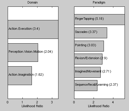 I am recently trying to use the Behavioral Domain and Paradigm Class (BDPC) Analysis results to do some explanatory work , but I can't find the reverse inference results (e.g. P(domain|activation) or P(paradigm|activation) ) using DBPC utility (which has been explicitly showed in your recent manual on Page 15, Figure 12). Am I use the wrong version, or otherwise can I use the forward inferences instead (my result was attached) ?