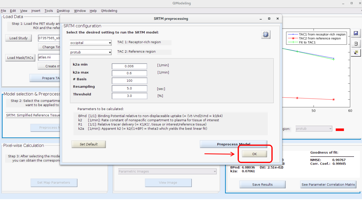 Regarding your problem. In the modal window of the Step 2, after click on Preprocess model button and generate the fitted curve, the modal window is minimized to see the results. So, you have to maximize it and click on "OK" button of the modal window (attached file) to accept the preprocessing results before continue to Step 3 Pixel-wise Calculation.